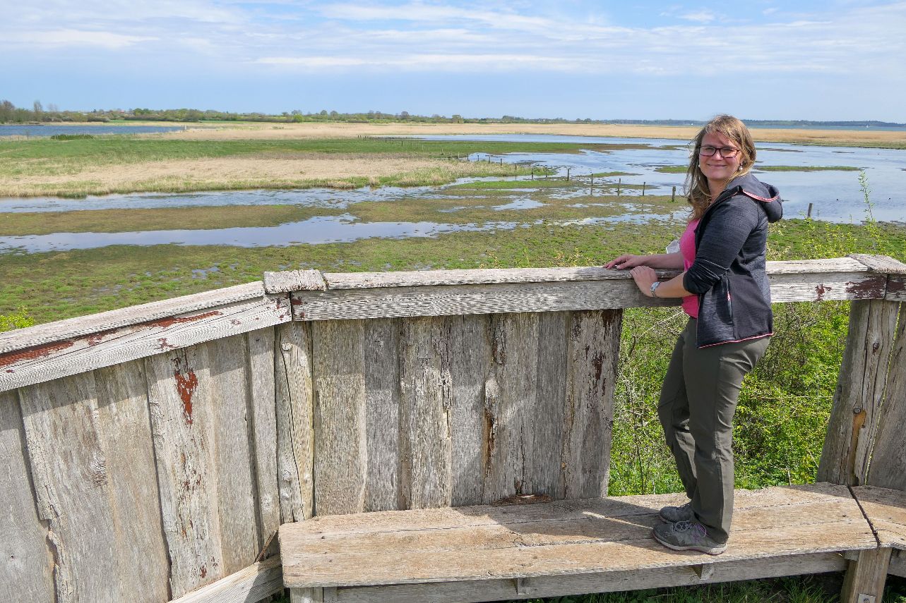 Am Ende des Spazierwegs befindet sich noch ein hölzener Aussichtsturm mit Blick auf die – leider leeren – Vogelbrutreviere. Angeblich sollen es hier sehr viele Kiebitze geben, war wohl noch nicht die Zeit.