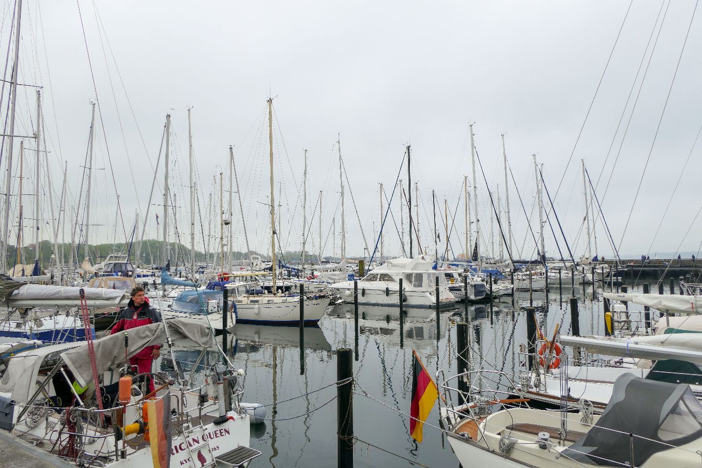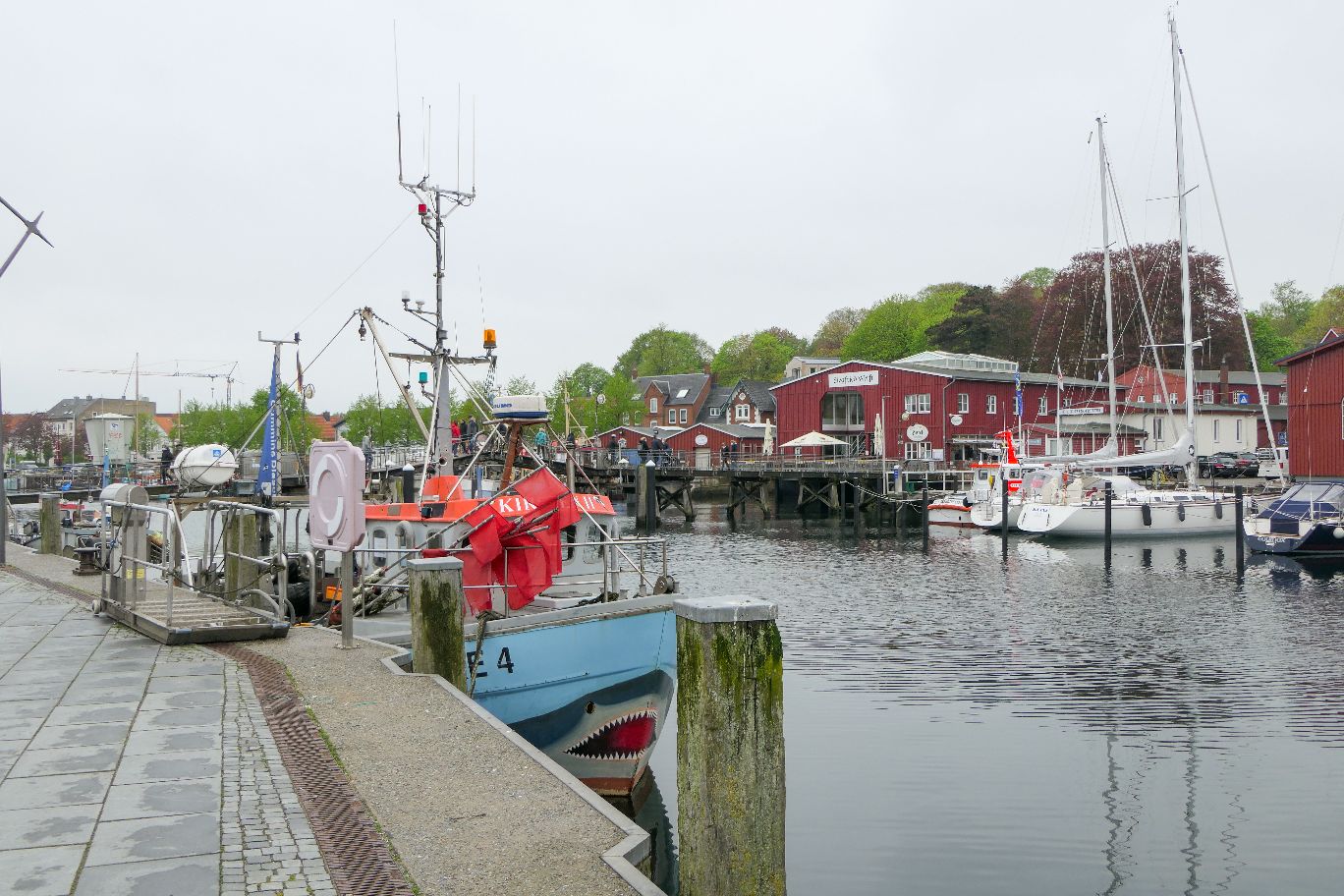 Einen halbtägigen Ausflug bei wechselhaften Wetter haben wir schließlich in die über 700 Jahre alte Hafenstadt Eckernförde in der Eckernförder Bucht unternommen. Von Olpenitz sind es nur ca. 30 Autofahrminuten. Da die Stadt Eckernförde selbst auch eine Tourismus Modellregion war, war es hier merklich voller.