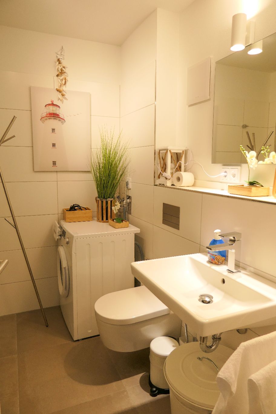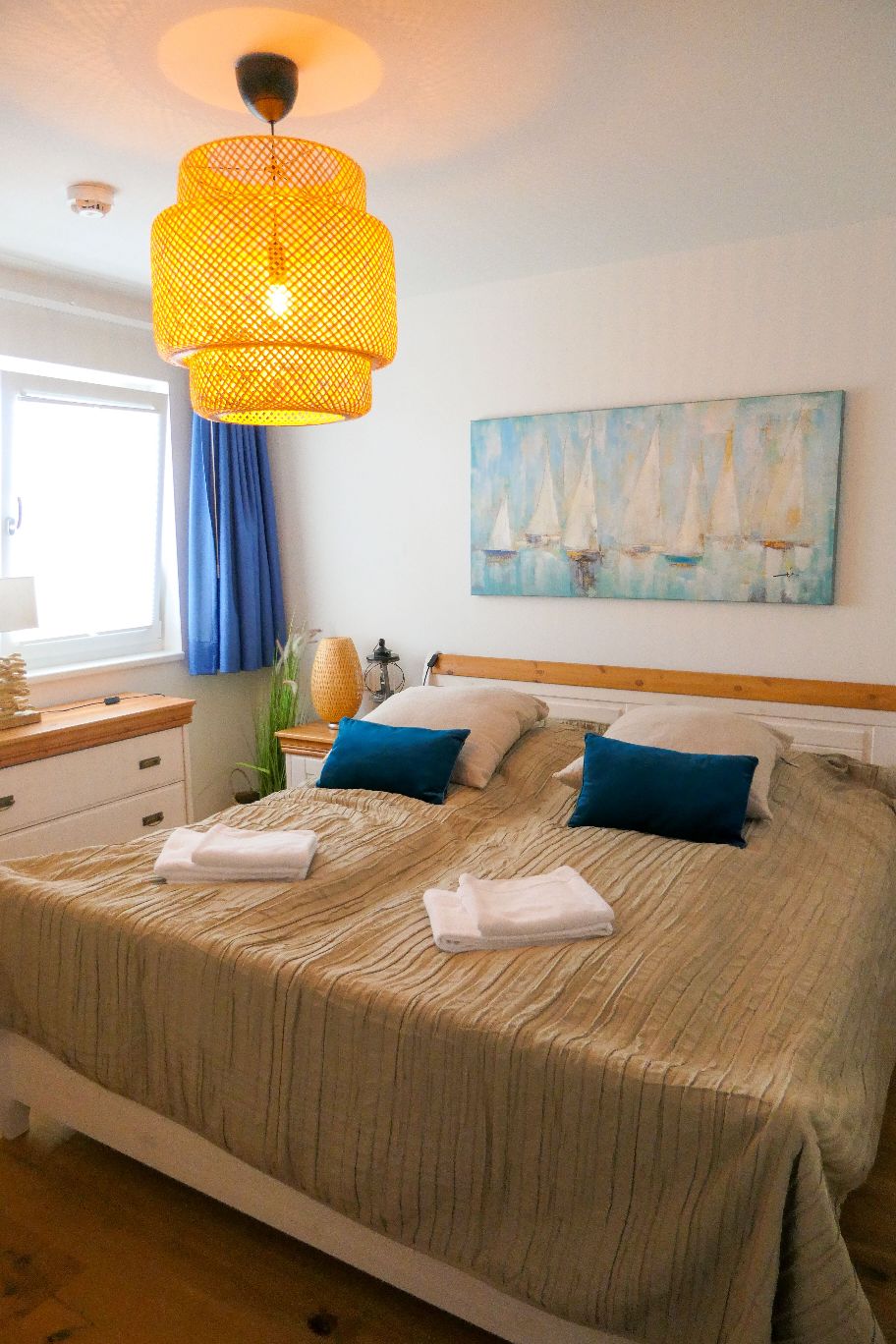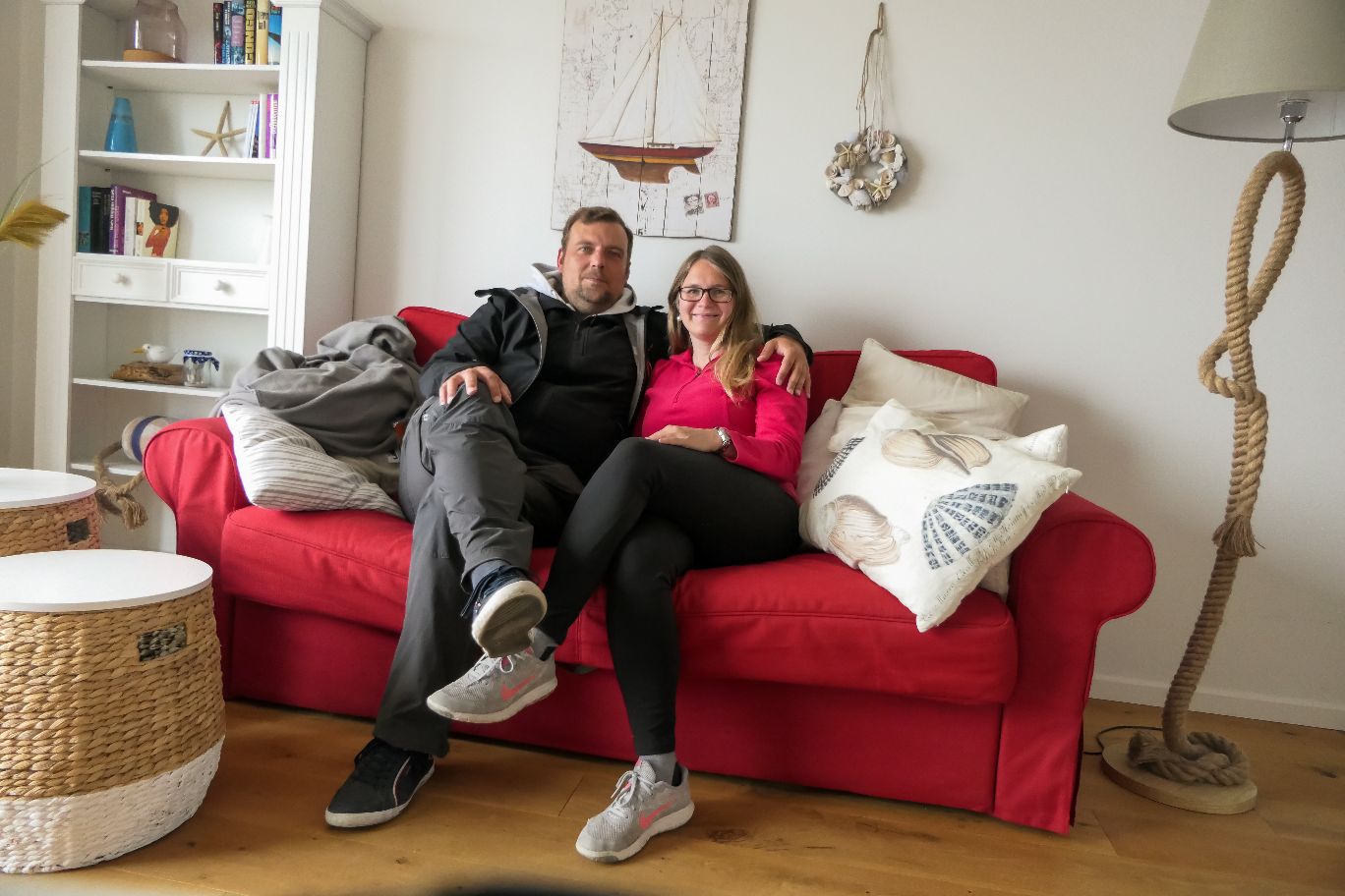 Glücklicherweise konnten wir unsere Auszeit in einer besonders schönen Ferienwohnung namens „Seestern“ im Ostseeressort Olpenitz genießen. Die moderne Wohnung bietet auf etwa 51 m² genügend Platz und Komfort für 2 Personen (notfalls auch bis zu 4, wenn man das Schlafsofa mitbenutzt) – mit einem großzügigen Wohn- und Essbereich mit Küche, ein separates Schlafzimmer mit Doppelbett und ein modernes Bad mit ebenerdiger Dusche. Die Küche ist voll ausgestattet mit Herd, Mikrowelle, Kaffeemaschine und allerlei Geschirr, Töpfen und sonstigen Utensilien. Es ist auch eine Waschmaschine und Bügeleisen vorhanden. Vor allem ist die Wohnung mit viel Liebe zum Detail eingerichtet und die Ostsee-Deko versprüht direkt Urlaubsfeeling.