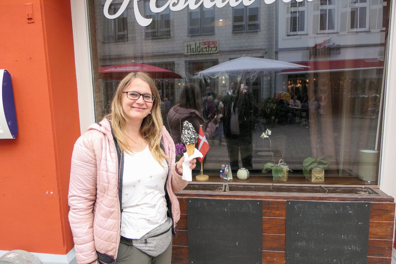 Stattdessen sind wir durch den Eckernförder Hafen flaniert – vorbei an zahlreichen modernen Yachtbooten und alten Seglern. Witzigerweise stand hier gerade das Segelschiff Loth Lorien vor Anker. Noch im Januar 2020 habe ich auf diesem Schiff im Hamburger Hafen in einer kleinen Koje übernachtet. Mit einem Schiff hat man immer den zentralsten Standort. Zu meiner Freude gab es am Hafen auch wieder das dänische Lakritz-Eis. Juchuh!