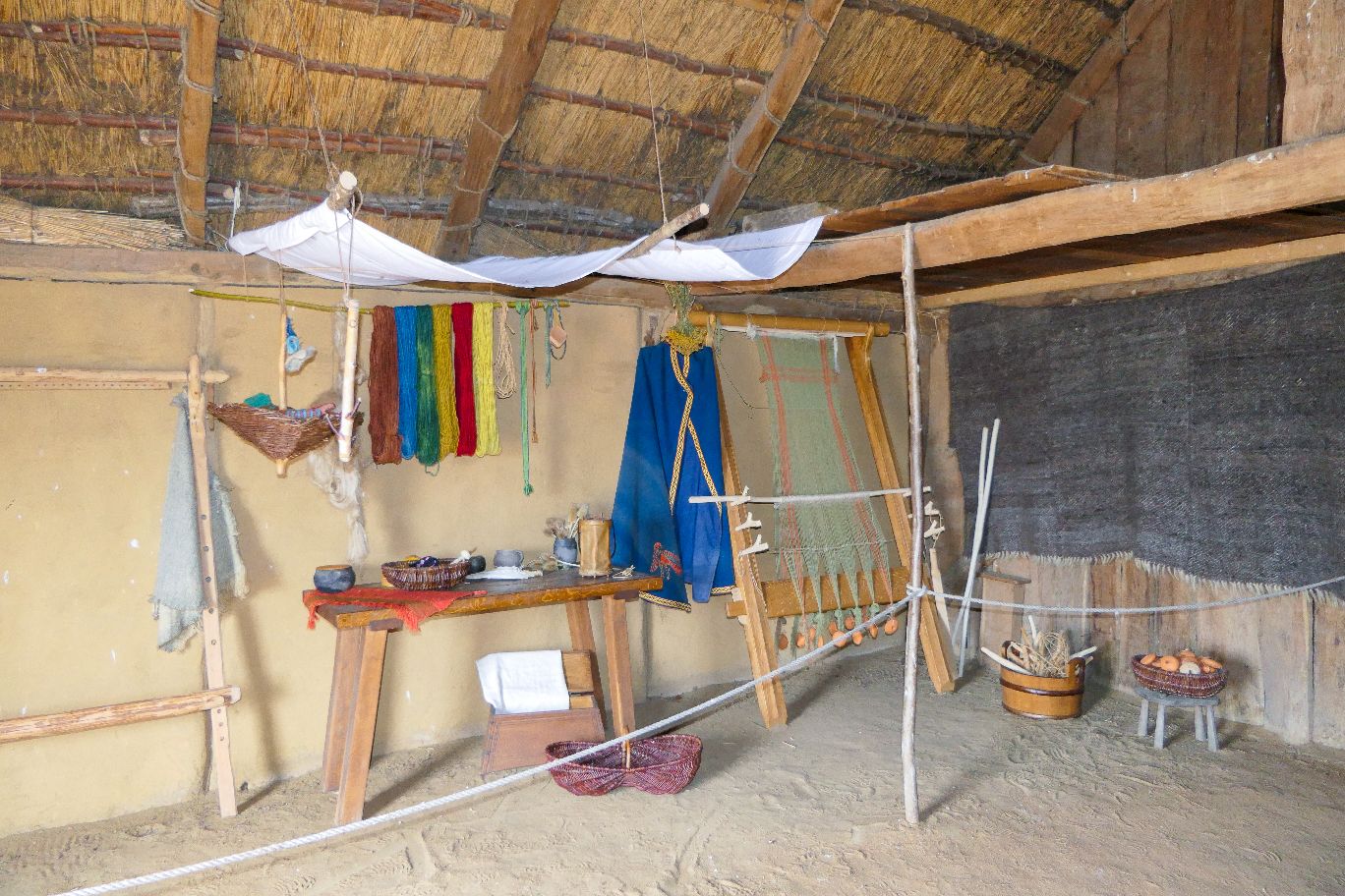 Wir konnten auf eigene Faust die Nachbauten erkunden, durch die Räume gehen und uns ein bisschen ins alte Wikingerleben hineinversetzen. Hier gab es Herbergen mit Schlafplätzen und Kochstellen, ein großer Speiseraum und verschiedene Handwerkstätten – vom Fischer bis zum Weber. Die Nachbauten sind wirklich bemerkenswert geworden und auch die Schwalben haben sich in den Häusern wohl gefühlt.
