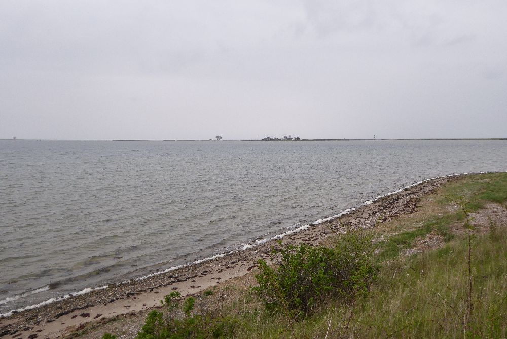 Gegen 12.35 Uhr erreichen wir schließlich Schleimünde, wo der Ostseefjord Schlei in die Ostsee mündet. Auf der Lotseninsel haben wir nun eine halbe Stunde lang Landgang. Groß ist das Inselchen nicht und es gibt gerade einmal ein Lokal, die Giftbude. Dahinter liegt ein kleiner Strand, der übersät von Muscheln ist.