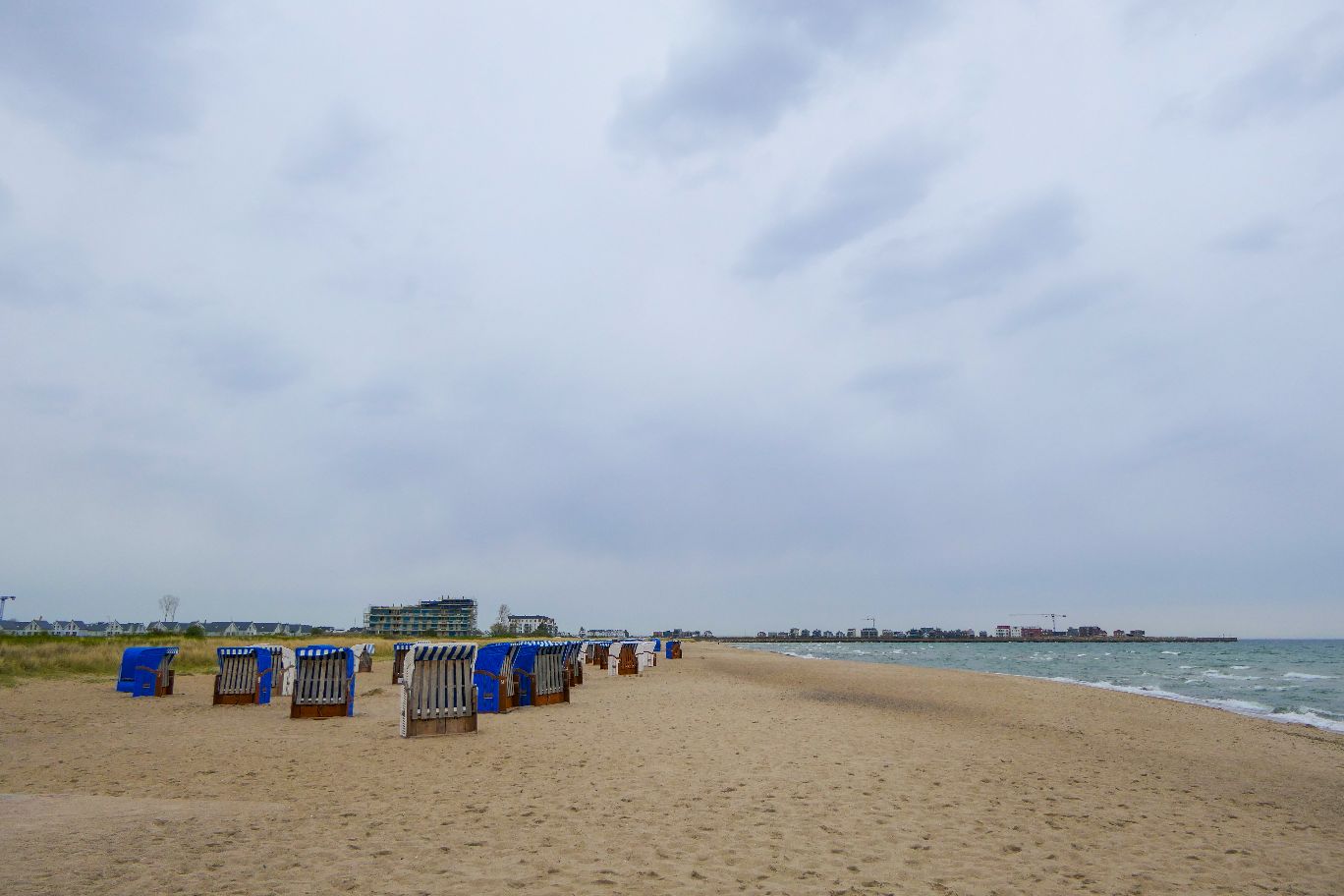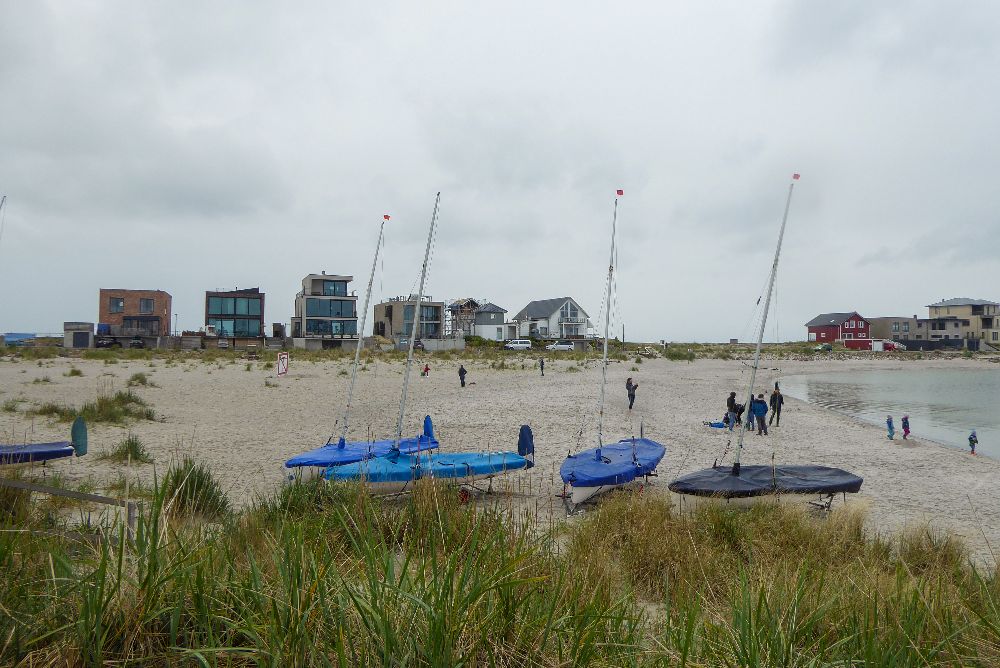 Der vom Ostseeressort nächstgelegene Strand ist der Weidefelder Strand. Von unserer Wohnung waren es 2,7km, während das Feriendorf in unmittelbarer Strandnähe liegt. Hier findet sich ein typischer Ostseebad-Strand mit weiß-blauen Strandkörben und weiten Blick auf das Meer. Am unteren Ende ist ein Hundestrand, am oberen Ende findet sich der FKK Bereich (witzigerweise in Sichtweite der zukünftigen Ferienunterkünfte – ob das ein extra Bonus wird? 😉 ).