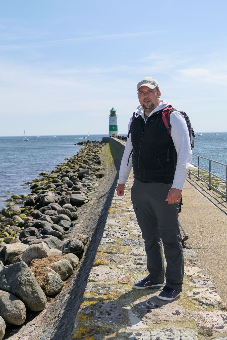 Der grün-weiße Leuchtturm ist ein besonders beliebtes Fotomotiv. Da die meisten Fahrgäste über die Kaimauer direkt zum Leuchtturm wandern, bevorzugen wir es das Motiv von kleinen Strand und der Mauer aus einzufangen. Es ist einfach schön, die Atmosphäre zu genießen – mit dem weiten Blick übers Meer und der salzigen Luft in der Nase. Herrlich!
