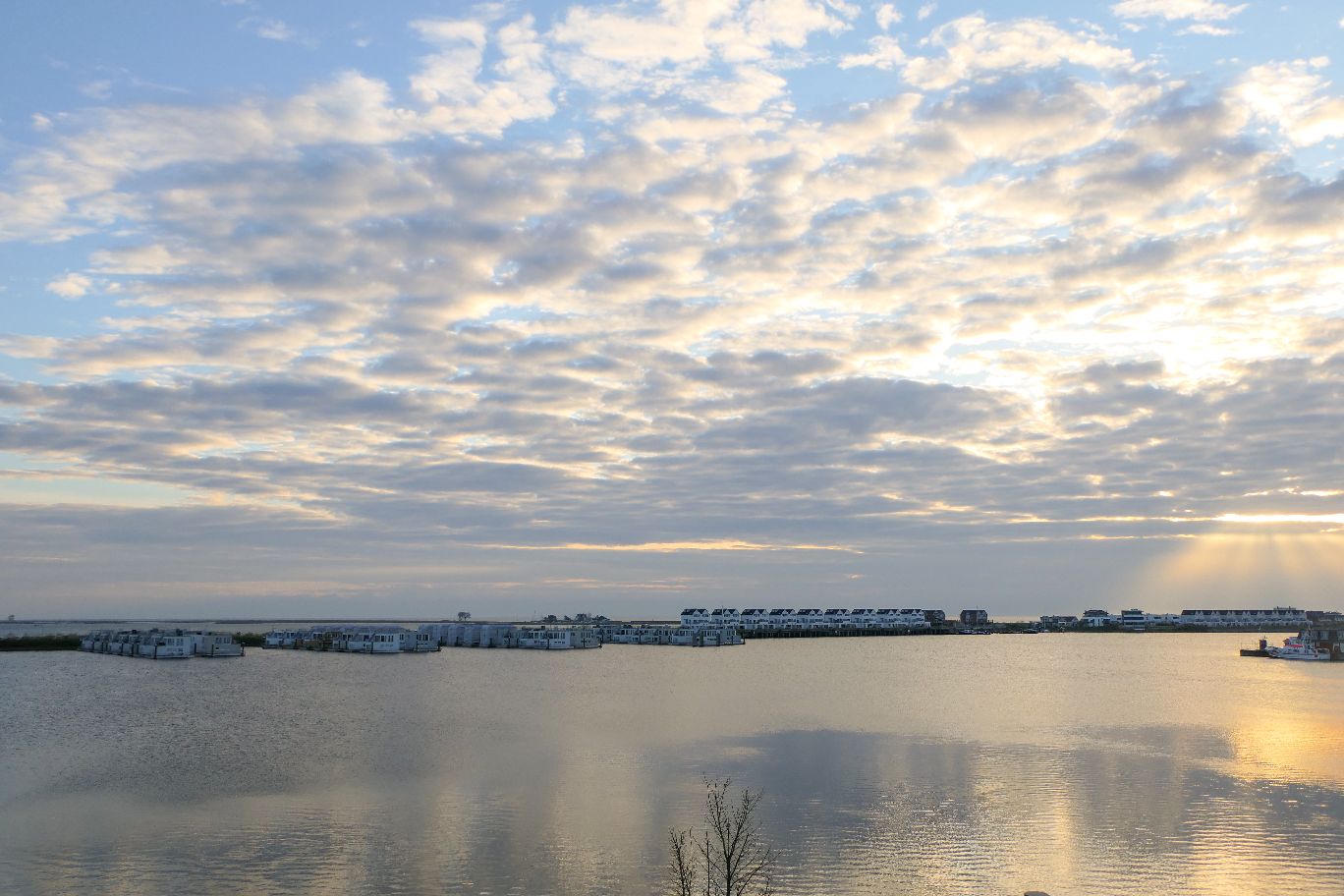 Das Highlight der Wohnung ist jedoch der Ausblick vom Balkon und Fenster. Wasser soweit das Auge reicht. Ihr schaut hier auf das Hafenbecken und die schwimmenden Häuser des Ostseeressorts. Dahinter liegt direkt die Schleimündung. Und in noch weiterer Ferne erspäht man noch die Ostsee. Besonders zum Sonnenaufgang und in der Abenddämmerung ist der Blick bei schönem Wetter wirklich ein Traum! Perfekt, um morgens seinen ersten Kaffee auf dem Balkon zu genießen oder sich abends im bequemen Relaxsessel in eine Decke einzukuscheln.