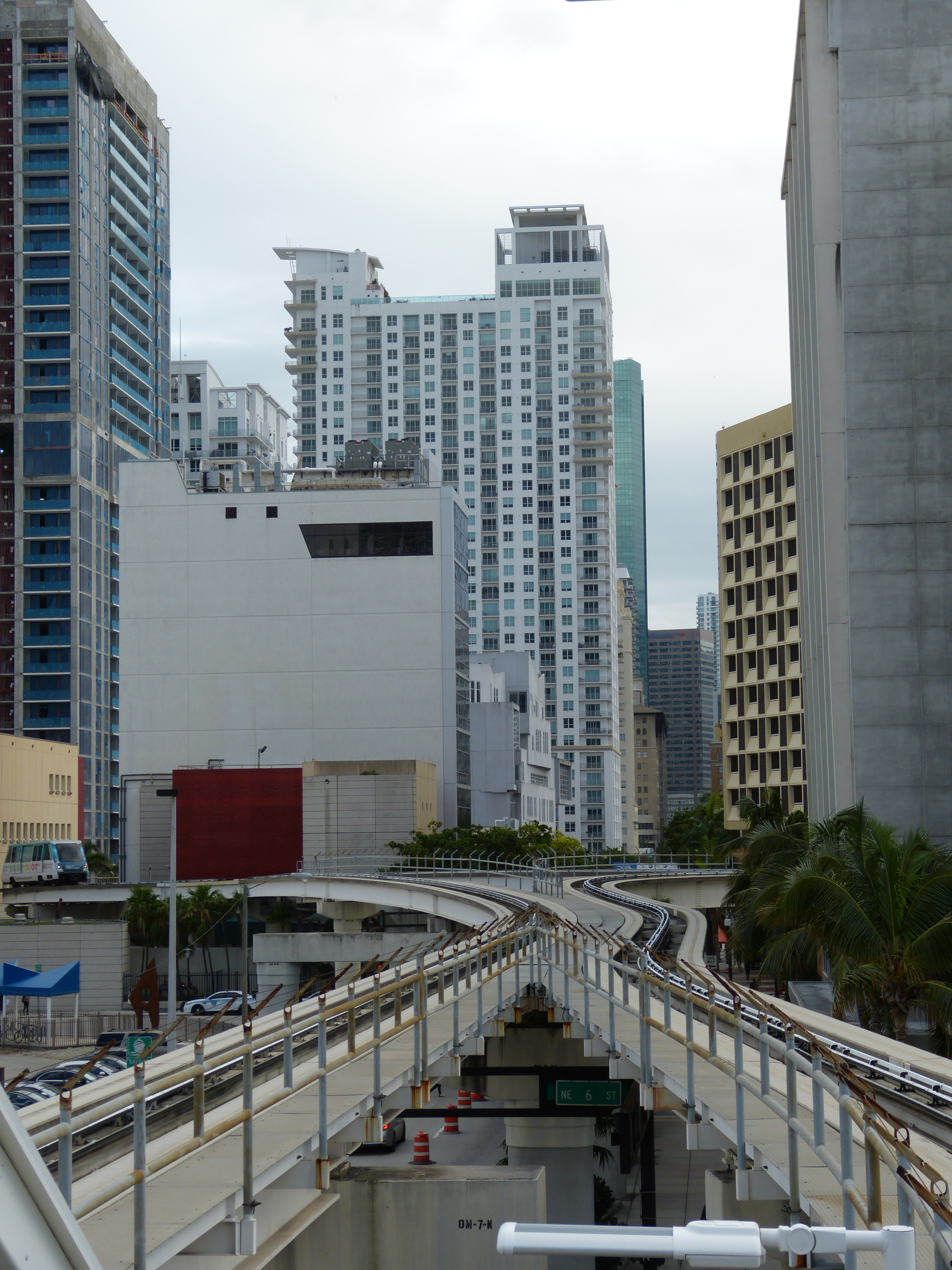 Bald schon scheint wieder die Sonne und wir können unseren nächsten Ausflug nach Downtown Miami starten. Mit dem Beach Max Bus gelangen wir direkt ins Herz der City. Hier probieren wir gleich das nächste Transportmittel aus – den Metromover. Mit dieser Bahn starten wir eine „Loop“-Runde, um einen näheren Blick auf die Wolkenkratzer und die unzähligen Baustellen zu werfen. Es wird hier so unendlich viel gebaut, dass Miami in einem Jahr wahrscheinlich ein völlig neues Gesicht haben wird.