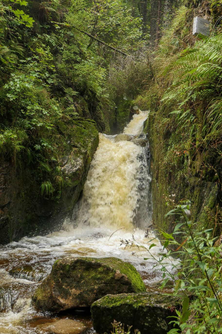 Die höchste Stufe des Wasserfalls mit 60m fällt über Granitgestein steil hinab. Sehr beeindruckend! Ehrlich gesagt hatte ich solche Wasserfälle in Deutschland gar nicht erwartet. Eine kleine Brücke führt über den abfließenden Bachlauf hinüber und bietet den schönsten Ausblick hinauf.
