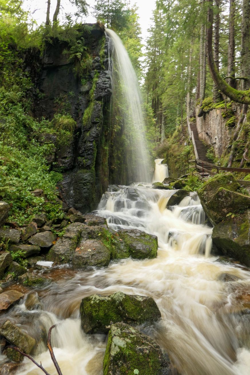 Der Todtnauer Wasserfall ist einer der höchsten Naturwasserfälle Deutschlands. Seine Quelle ist der Stübenbach auf 1386m Höhe. Im Hochtal von Todtnauberg sammeln sich weitere Bäche. Insgesamt stürzt der Wasserfall in 5 Stufen über 97m ins Tal hinab. Dabei ist seine tiefste Stufe 60m hoch und ist damit die höchste Einzelstufe im Schwarzwald.