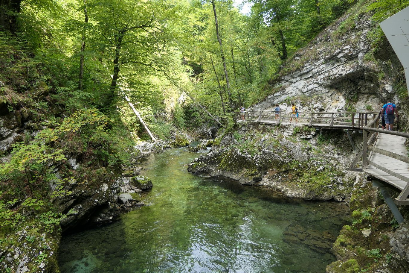 Die Vintgar-Klamm ist Teil des Triglav Nationalparks und eine wahre Natursehenswürdigkeit. Geformt wurde sie vom Fluss Radovna, der sich seinen Weg durch die bis zu 250m steilen Bergwände geformt hat. Mal ruhig, mal wild fließt er durch die malerische enge Klamm und bildet rauschende Stromschnellen, klare Gumpen und kleine Wasserfälle. Am Ende der Klamm stürzt er als Flusswasserfall Šum 13m in die Tiefe.