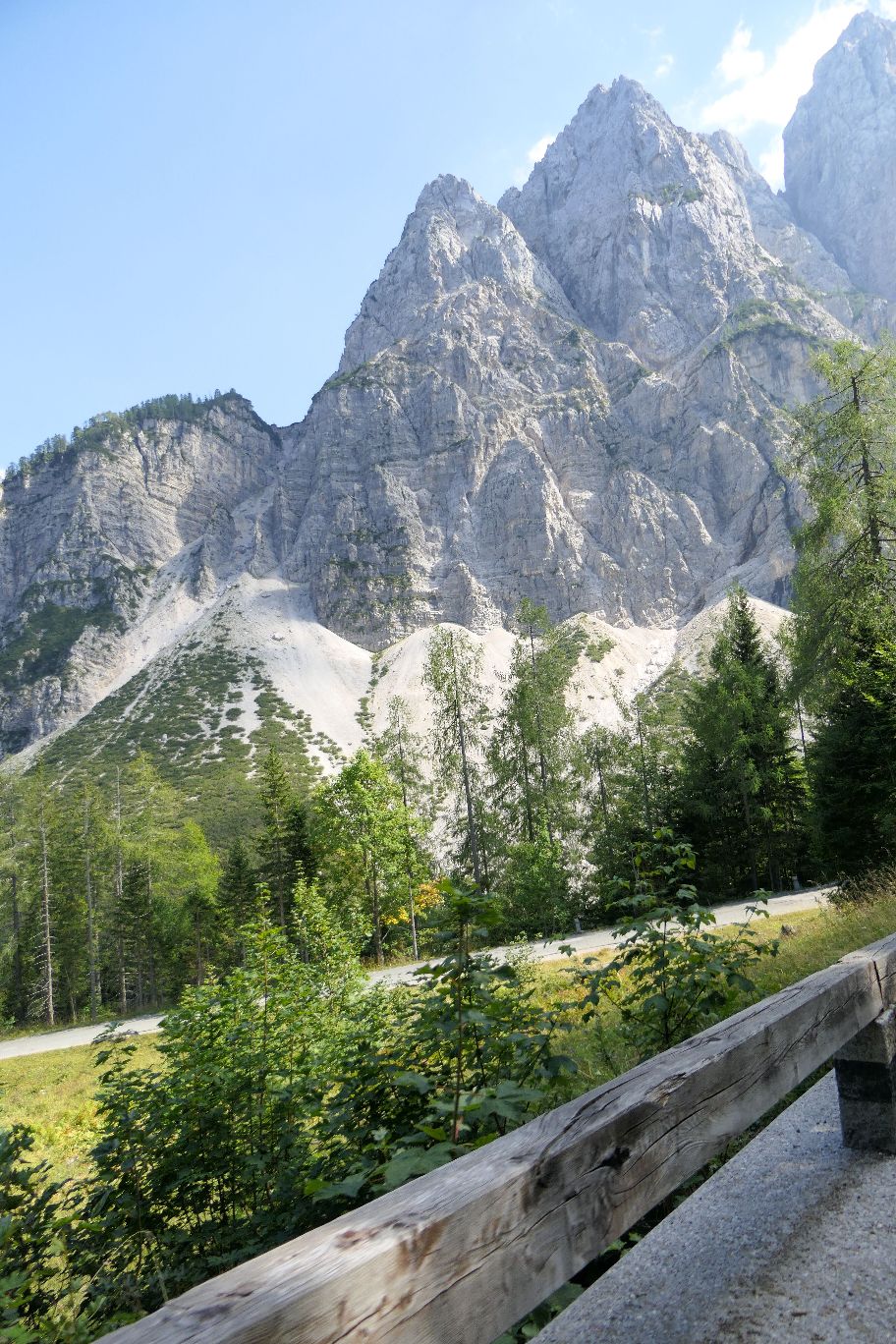 Unser Auto kämpft sich immer weiter Serpentinen hinauf und wir nähern uns immer weiter dem Gipfelpanorama. An einer Wiese legen wir nochmal einen Fotostopp ein. So ein idyllisches Panorama mit weidenden Kühen vor den gigantischen Bergkulisse mit dolomitenartigen Bergspitzen muss einfach fotografisch festgehalten werden. Wunderschön hier oben!